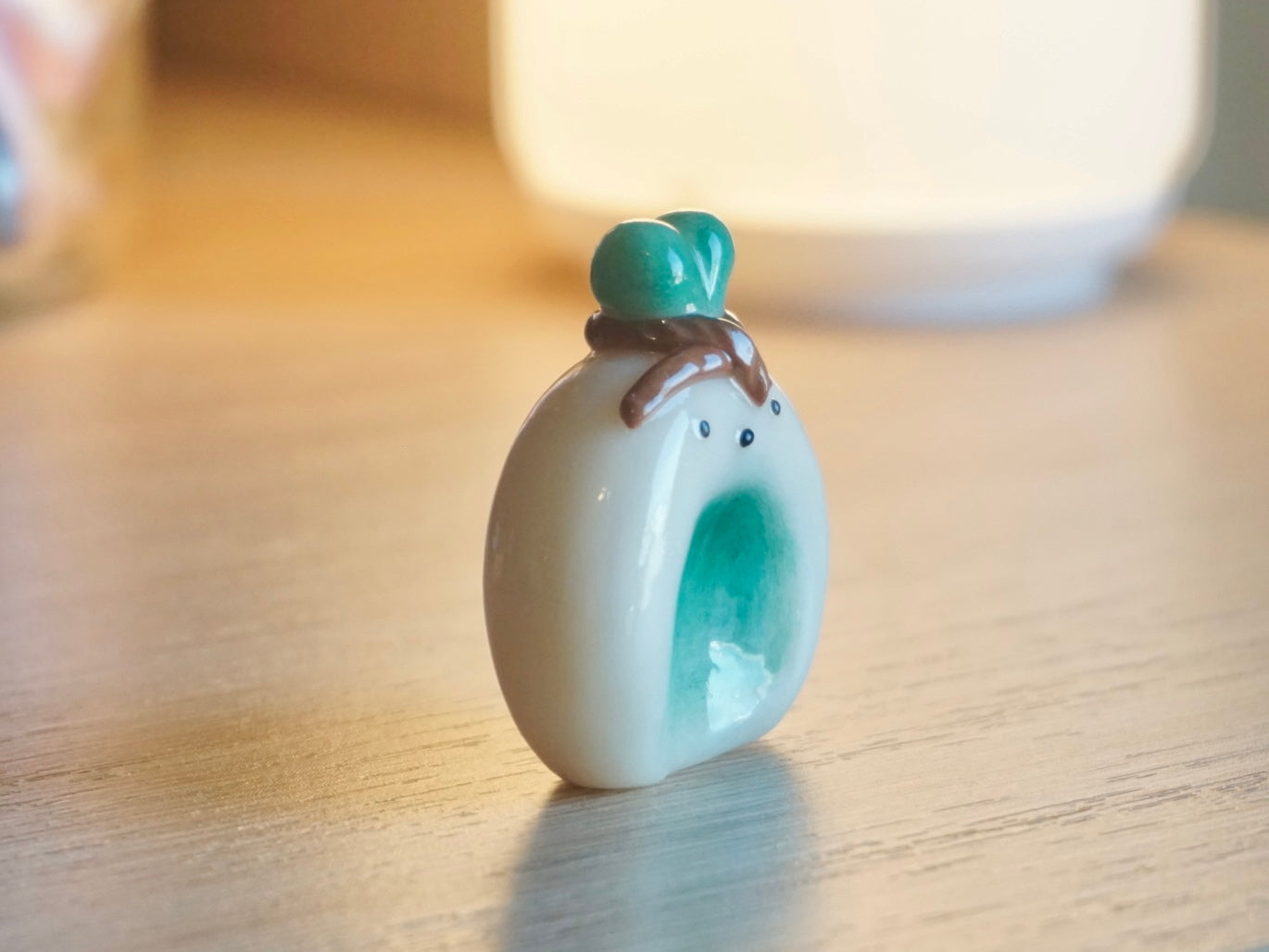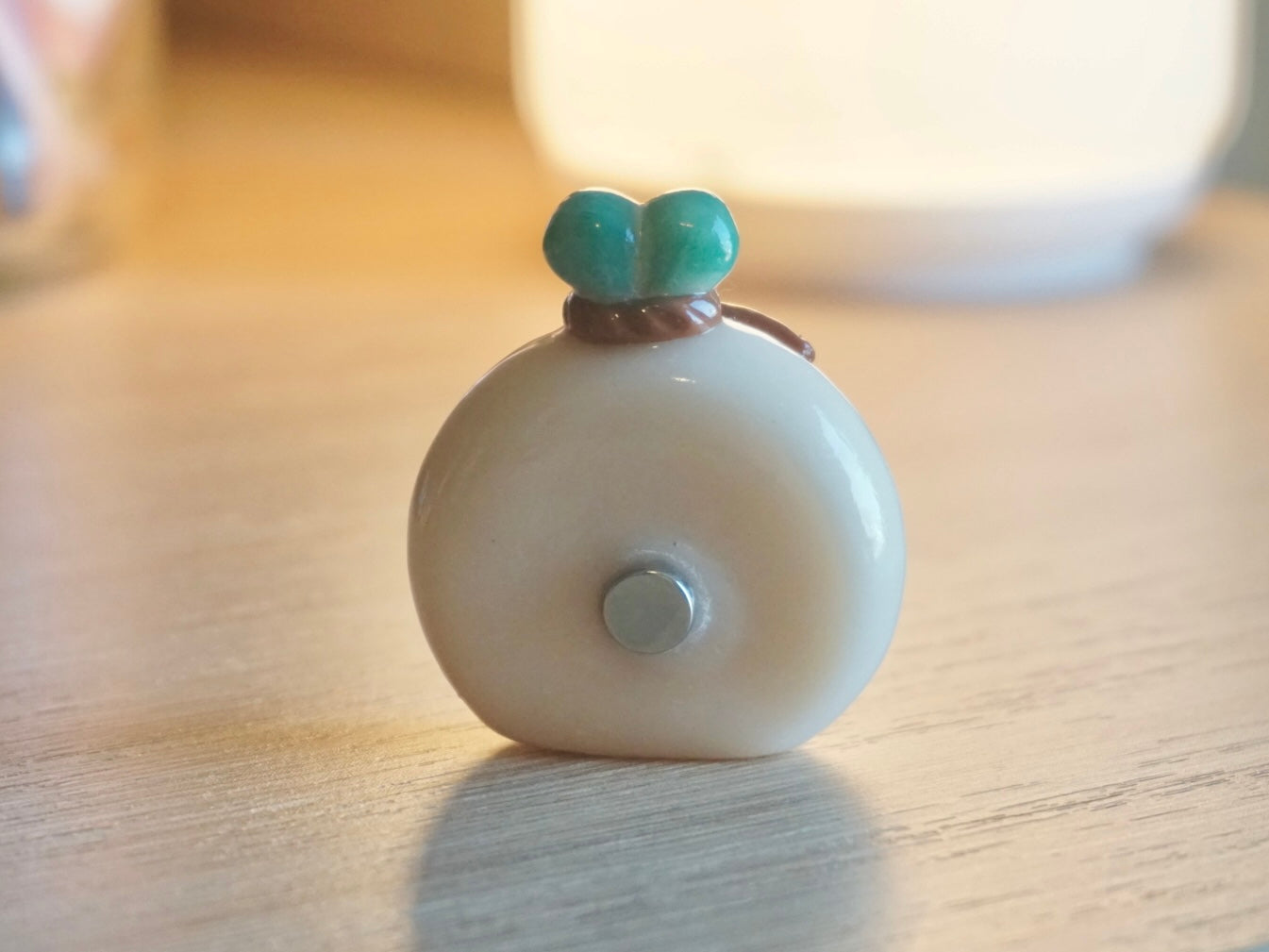 Description: Made with polymer clay, glazed with several layers of varnish.