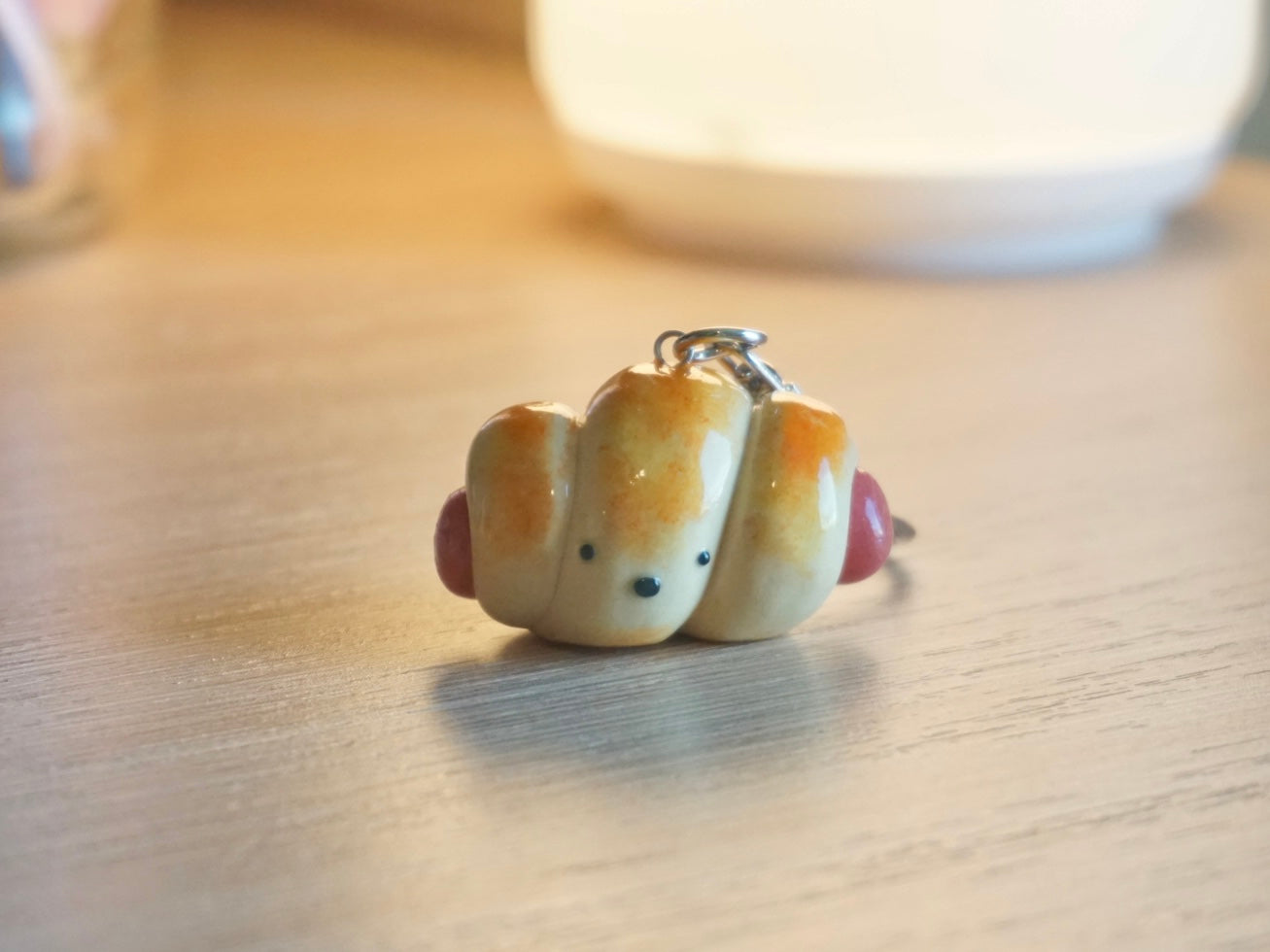 Meet the cutest Sausage Bun. Sausage bun is one of my family’s favourite from the bakery and hope you’ll like it too. Each one is hand-sculpted and glazed with care, making every bun one-of-a-kind. It’s the perfect pocket-sized friend to hang on your bag, keys, or anywhere you need a sprinkle of sweetness.